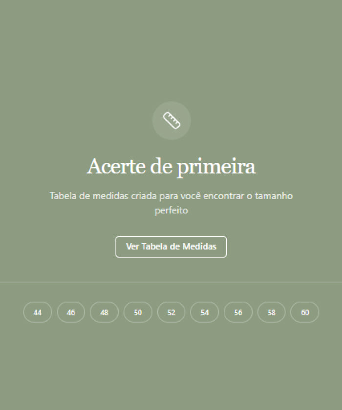 "A tabela de medidas é super precisa. Comprei sem medo e acertei de primeira. O tecido é de qualidade!"
